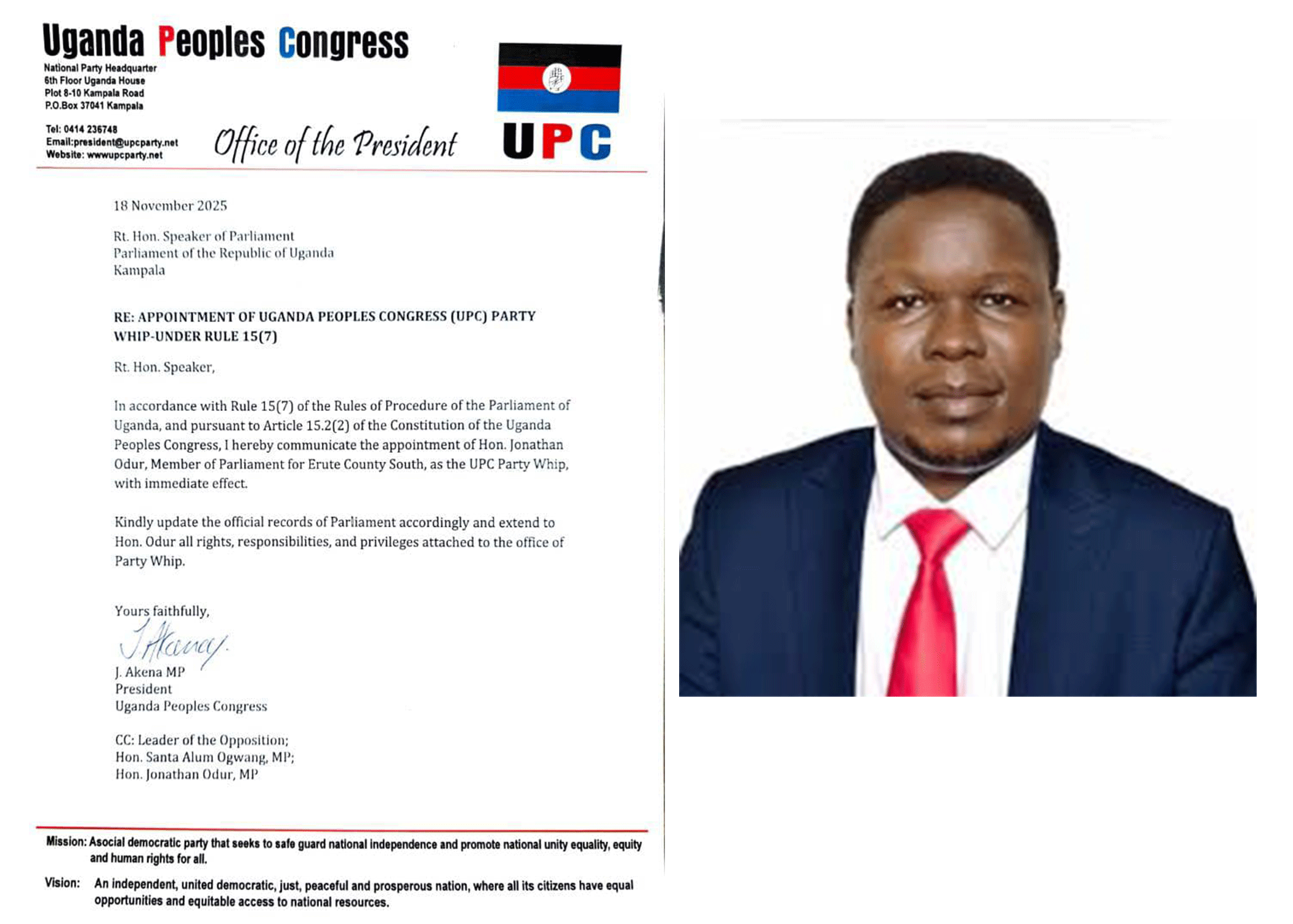 From ‘People’s MP’ to Party Enforcer: UPC Bets on Jonathan Odur as New Whip
